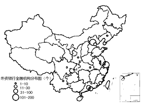 3、单选题 读“2006年中国外资银行机构的城市分布图”(下图),影响其布局的最主要区位因素是