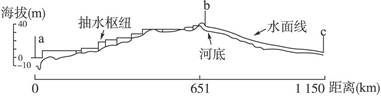 (3)该输水干线水利工程建设投资少的主要原因是____________________________,此输水路线中可以自流输水的河段是____________河段。(2分)