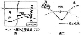 材料三图16中东非地区的甲地,海拔1800米,下面为该地1、7两个月的气温和降水资料。