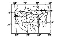 (2)说出图示地区南部的气候成因。解释图示河流上游流域面积狭小的原因。(6分)
