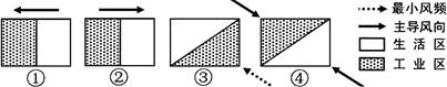 本题考查环境对工业布局的影响。工业区的布局应该考虑工业对环境的污染。污染河流的工业应位于河流的下游或远离河流;污染大气的工业应该布局在主导风向下风向或盛行风向垂直的郊外,最小风频的上风向。①③位于盛行风向的下风向。所以本题选择B选项。