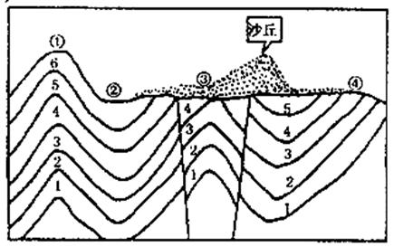5、单选题  读下面某地地质地形剖面图,图中1、2、3、4、5、6为地层编号,并表示地层由老到新。据此判断下列各题。