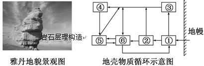 3、综合题 下图为“岩石圈物质循环示意图和大气受热过程图”。读图回答下列问题。(9分)
