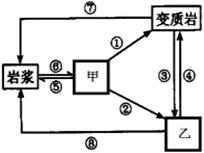 2、单选题 图为“地壳物质循环示意图”,读图完成题。