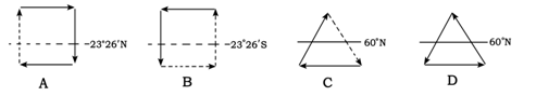 4、单选题 在图中,洋流分布规律的正确图示为(实线箭头为暖流,虚线箭头为寒流) (?)