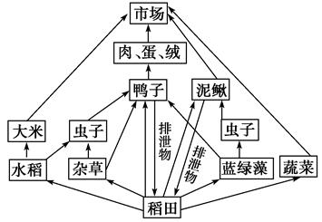 2、综合题 日本九州岛一个7英亩的水稻农场建立了下图所示的发展模式。读图,完成下列问题。(16分)