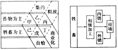 2、右图所示农业活动模式,与左图中哪一农业类型的经营特色一致