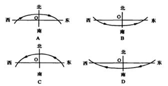(5)以下四幅图表示该日我国某中学操场上旗杆(旗杆立于O点)杆影端点移动的轨迹和方向,其中正确的是(   )(3分)