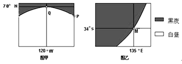 ⑷该日,Q、P两地的夜长大小关系是 ,M地昼长为 。(4分)
