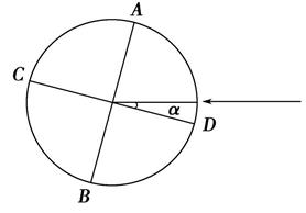 2、综合题 下图所示半球为东半球,AB为地轴,CD为赤道,箭头指示太阳直射点位置,∠α为12°。据此完成下列问题。