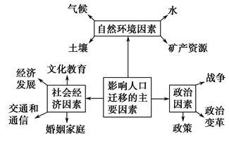 点评:本题难度较小,主要考查了影响人口迁移与人口流动的主要因素,具体方面如下图所示: