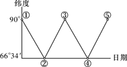 4、单选题 晨昏线与北半球纬线圈相切于H点,读H点纬度的年变化示意图,回答下列各题。