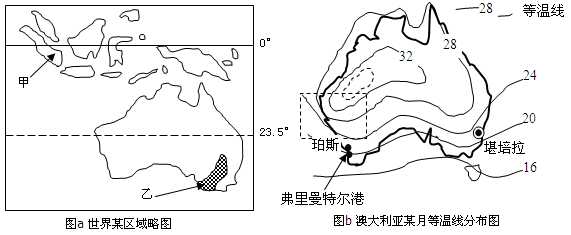 (4)描述图b中24℃等温线西段(虚线框内)的走向并指出该走向形成的影响因素。(6分)
