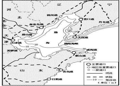 (1)渤海是我国内海,地处山东半岛与辽东半岛之间。