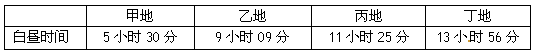 2、单选题 下表所列的是6月22日甲、乙、丙、丁四地的白昼时间,读表完成1—2题。