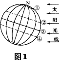 3、单选题  图1日期所示的①、②、③、④四地中,白昼时间最长的是