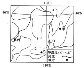 A.乙城市西侧的等温线向西弯曲主要影响因素是海陆位置