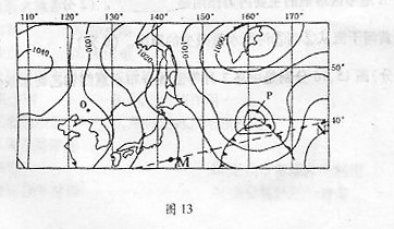 (1)图13中天气系统多出现于________(1,7月)此时我国大