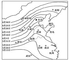 5、单选题 如图为我国杏树开花盛期物候图。读图回答下列问题。