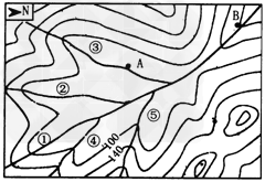 (3)该地拟建一水库,请选出大坝坝址,以“//”为图例在图中画出。筑坝前,A、B两个村庄中______村需搬迁。
