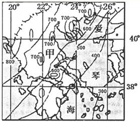 (1)图中降水量的空间分布特征可直观读图得出:西北多东南少;西北部和部分山区降水最多,达800mm以上;东南部降水最少,在300mm以下。图示地区是地中海沿岸,自东向西受来自大西洋西风带的影响越强,降水越多,北半球的西风是西南风;西风带主要影响30°-60°之间,自南向北受西风带的控制时间越长,影响越大,降水越多;山区处受地形抬升,多地形雨,降水量较多。