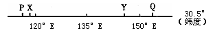 小题1:直接根据图示的经度位置判断,该地区位于东半球,而结合该地区的海陆分布“P点以西为海洋,Q点以东为海洋,PQ为陆地”判断该地区应位于30.5°S附近,PQ之间为澳大利亚大陆,故反映该地位于南半球。