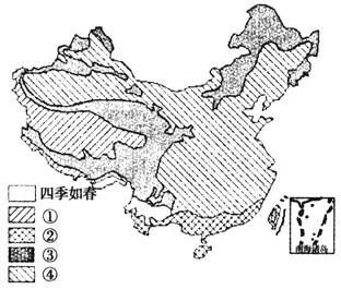 2、单选题 下图为中国陆地四季类型分布图,读图完成1~2题。