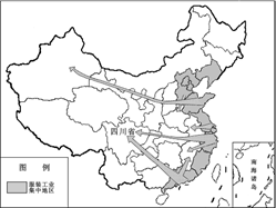 材料二:图2(中国服装产业向中、西部转移示意图)。