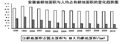 小题4:据该图说明安徽省人均耕地面积的变化特征,并提出该省耕地可持续利用的合理建议。