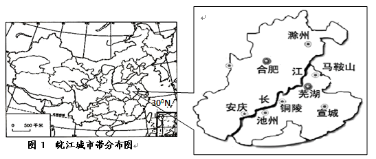 小题1:根据图1、图2,说出皖江城市带的分布特点。