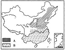 (1)图中A、B所表示的耕地类型分别是________和________,主要粮食作物分别是________和________。(4分)