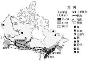 (1)由图分析加拿大矿产资源的特点。(2分)