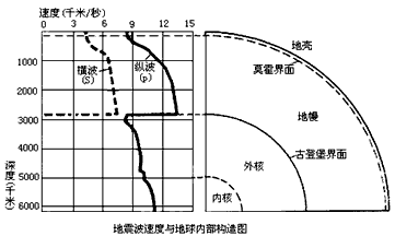 2、根据古登堡界面地震波速度的变化特点,推断地幔物质