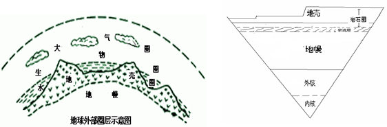 1、单选题 读下图“地球外部圈层示意图”,回答下列各题。