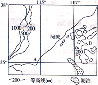 1.在ab河段间,等高线与河流交点处,等高线向右侧(b)凸出,说明b处地势高,左侧(a)地势低,河流自b流a,再根据图中的指向标,可知河流由东北流向西南。选项B正确。