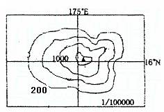 5、单选题 下图为某火山岛等高线地形图(单位:米),读图回答下列各题