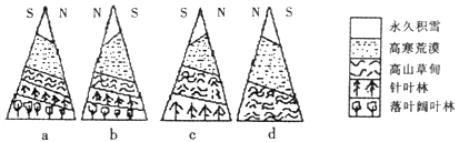 3.本题考查影响雪线的影响因素。向阳坡同一自然带分布的海拔高。迎风坡雪线低。a的基带为落叶林,处于温带;c的基带为针叶林,位于亚寒带;d的基带为高山草甸,所以近地面气温由高到低的排序是acd。所以本题选择D选项。