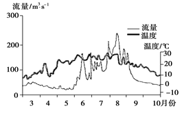 【小题1】判断河流补给形式要看径流总量及季节分配情况。由图可知,该河流量跟气温关系密切,并且河流冬春断流,所以,应该是以冰雪融水为主要补给水源的河流。