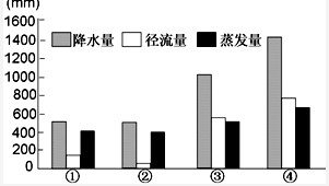 小题2:第2题,黄河流量最小,主要是因为黄河上中游流经干旱、半干旱地区,降水量少,蒸发旺盛,且沿岸工农业用水量大。