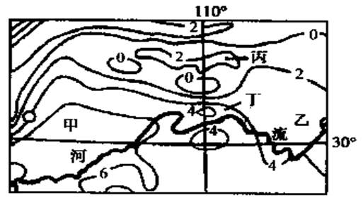 【小题1】据图可知:图中河流为长江,甲为四川盆地,乙为江汉平原,丙为汉水谷地,丁为长江三峡。甲乙两地纬度相当,甲地一月均温大于6℃高于乙地2-4℃之间,排除A、B、C;四川盆地北有秦岭阻挡,受冬季风影响小,所以一月均温高于长江中下游平原,所以本题D正确。