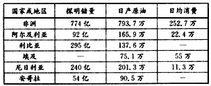 材料二:非洲及主要产油国石油基本状况统计(单位:桶)