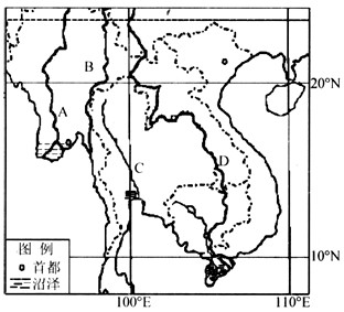 2、综合题 2009年6月16日,中缅签署《中国石油天然气集团公司与缅甸联邦能源部关于开发、运营和管理中缅原油管道项目的谅解备忘录》,中缅管道今年9月份全面开工。该管道两起缅甸西海岸实兑港,东至我国昆明,全长1100 公里。结合东南亚略图,回答下列问题。