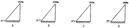 1、单选题 读图,按气温垂在变化一般规律,推算可能有永久性积雪的山峰是