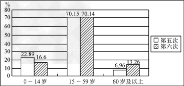 十年增加7 390万人,年均增长0.57%。图为我国第五、六次人口普查年龄结构对比