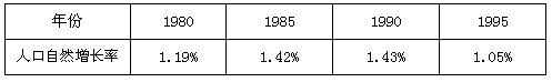 (3)利用下表数据,在图中绘出1975~1995年间我国人口增长率曲线。