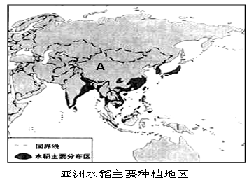1、单选题  读“亚洲水稻主要种植地区 ”图,完成问题