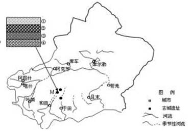 4、单选题  下图所示是M 古城遗址附近古河床沉积物剖面图。四个时期古河床沉积物颗粒大小的排列特点是:②>④>③>①。据此回答下题。