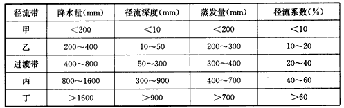 2、与表中乙、丙径流带对应的自然植被分别是