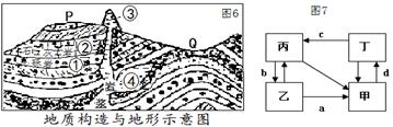 1、单选题 若图7中丙类岩石中含有化石,读图回答问题