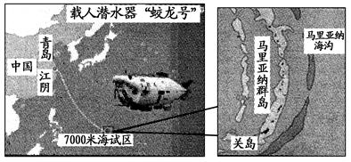3、单选题 2012年6月3日,“向阳红09”试验母船搭载“蛟龙号”载人潜水器从江阴启航,奔赴马里亚纳海沟区域执行7 000米级海试任务。据此完成小题。